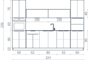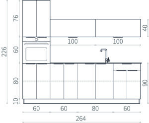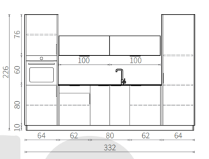 לחצו כאן למדריך מידות מטבח 2 מטר BASIC עם ארונות עליונים