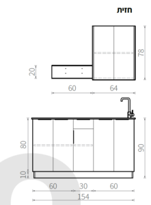 לחצו כאן למדריך מידות מטבח 2.1 BASIC עם ארון עליון ומדף