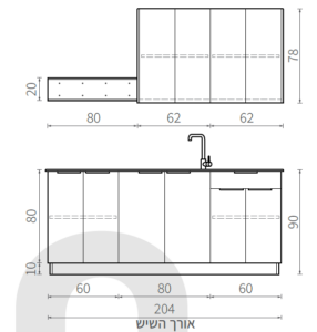גובה חלק עליון: ארון עליון 78 ס"מ
