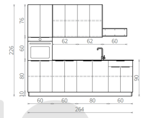 לחצו כאן למדריך מידות מטבח 2.6 בייסיק עם ארונות עליונים