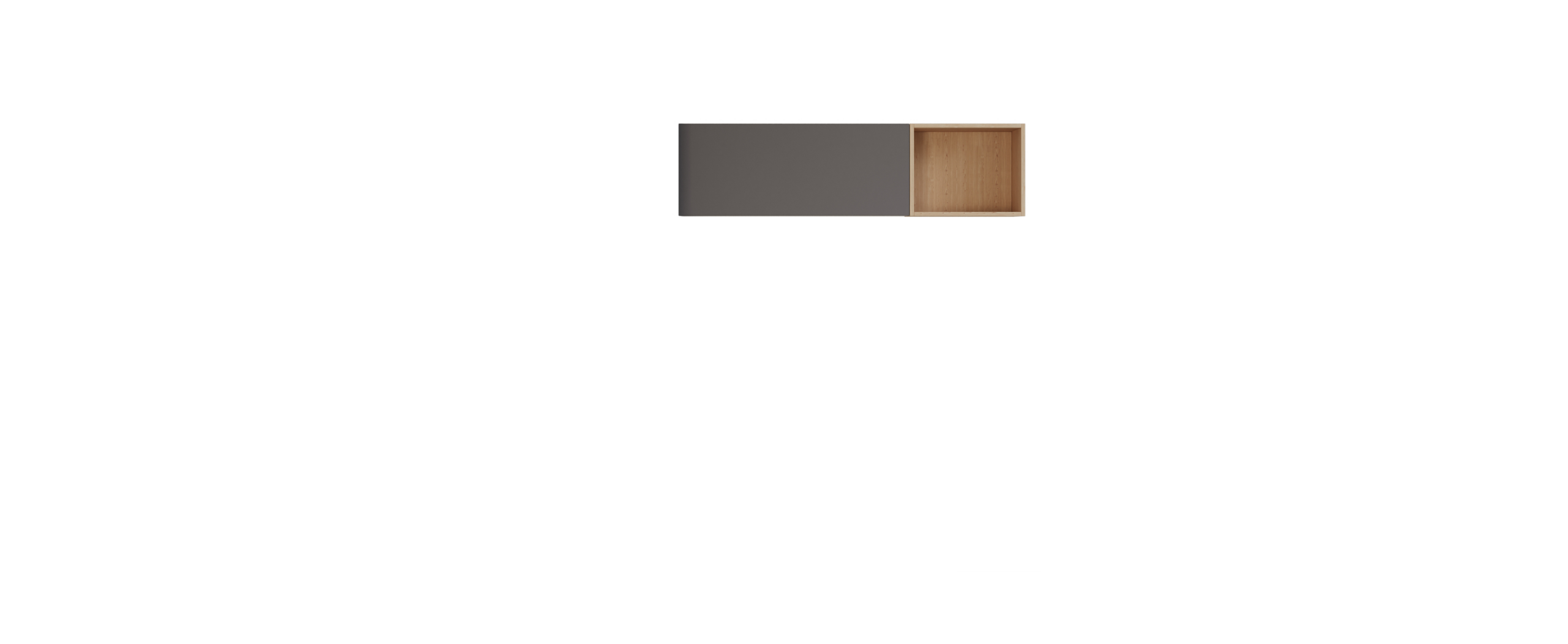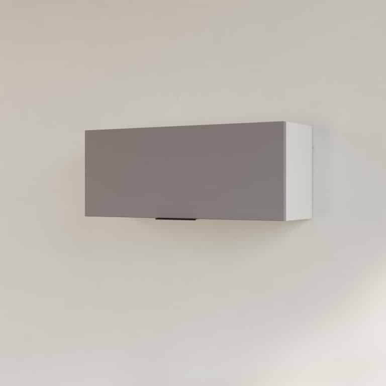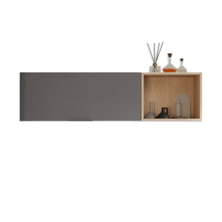 ארון עליון MADERO לאחסון מירבי ומדף מתכת VASIO בצביעה אלקטרוסטטית למראה מינימליסטי ונקי.