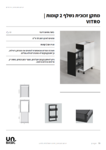מתקן זכוכית נשלף 2 קומות מסדרת VITRO של יוניטס מטבחים. פתרון אחסון חכם ואלגנטי המעניק לארון הצר נוכחות מרבית ונגישות מלאה. המתקן מאפשר שליפה חלקה עד הסוף ומייצר סדר אסתטי ונקי לכל כלי הזכוכית, ואידאלי לבקבוקים ותבלינים. שתי קומות אחסון עם דפנות זכוכית מעוצבות מבטיחות ניצול מושלם של חלל הארונית תוך שמירה על קווים מודרניים ופרקטיות יומיומית. גם ארון קטן הופך כך לאלמנט שימושי ומעוצב, שמשתלב בהרמוניה עם המטבח כולו.