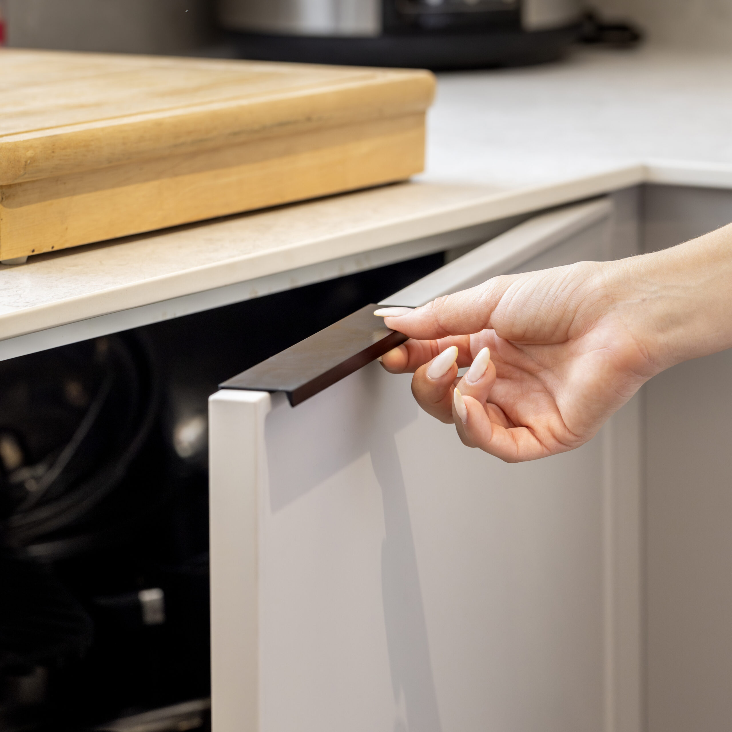 ידית שחורה רוכבת דגם CONTEM מעניקה לכל מטבח מוכן מראה מודרני, מדויק ובעל נוכחות.
