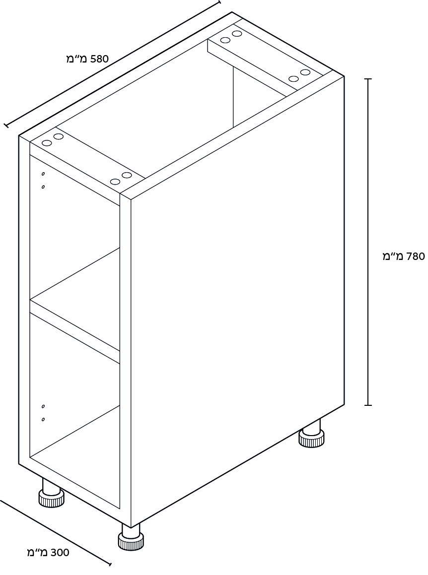גופי המטבח שלנו מיוצרים בקפידה מעץ סנדוויץ' עמיד במיוחד, מגיעים באריזה שטוחה (Flat Pack) להרכבה קלה ונוחה, וכוללים את כל הפרזול הנדרש – מסילות, צירים בטריקה שקטה, רגליות, מסילות טלסקופיות ואביזרי חיבור.